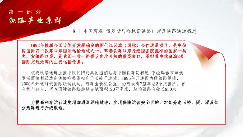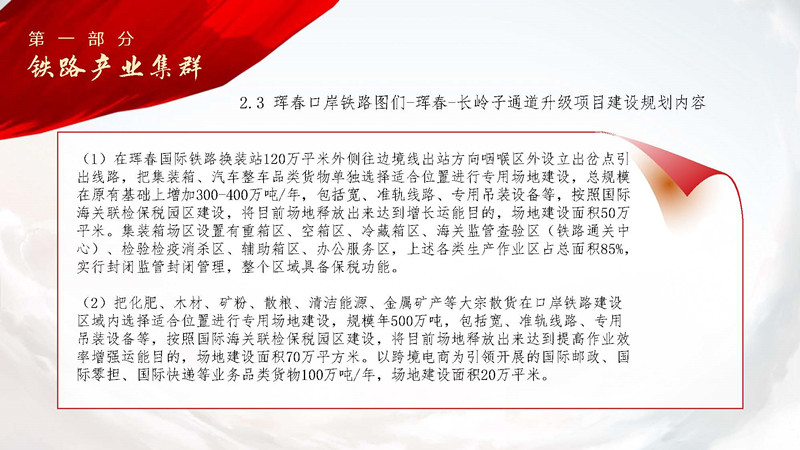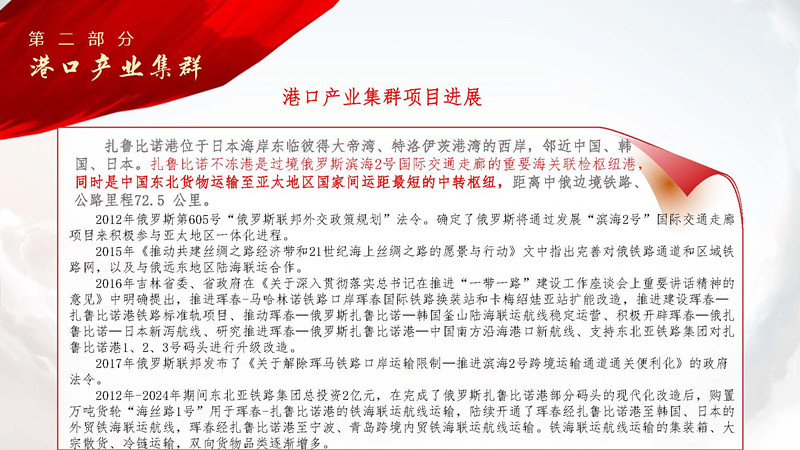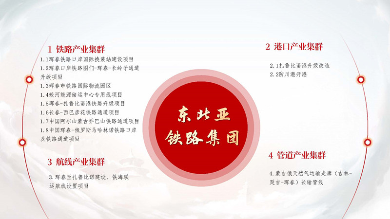 2024年12月29日吉林省東北亞鐵路集團(tuán)股份有限公司近期發(fā)展規(guī)劃正式發(fā)布。規(guī)劃圍繞“一帶一路對(duì)接歐亞經(jīng)濟(jì)聯(lián)盟”建設(shè),依據(jù)“東北振興-遠(yuǎn)東發(fā)展規(guī)劃”綱要,為落實(shí)《中華人民共和國(guó)主席和俄羅斯聯(lián)邦總統(tǒng)關(guān)于2030年前中俄經(jīng)濟(jì)合作重點(diǎn)方向發(fā)展規(guī)劃的聯(lián)合聲明》關(guān)于深化口岸合作發(fā)展的重要事項(xiàng),結(jié)合“濱海2號(hào)國(guó)際運(yùn)輸走廊”“中蒙俄歐亞運(yùn)輸新通道”項(xiàng)目吉林省東北亞鐵路集團(tuán)股份有限公司將加快實(shí)施鐵路、港口、航線、管道四大產(chǎn)業(yè)集群十大建設(shè)項(xiàng)目。具體如下:
